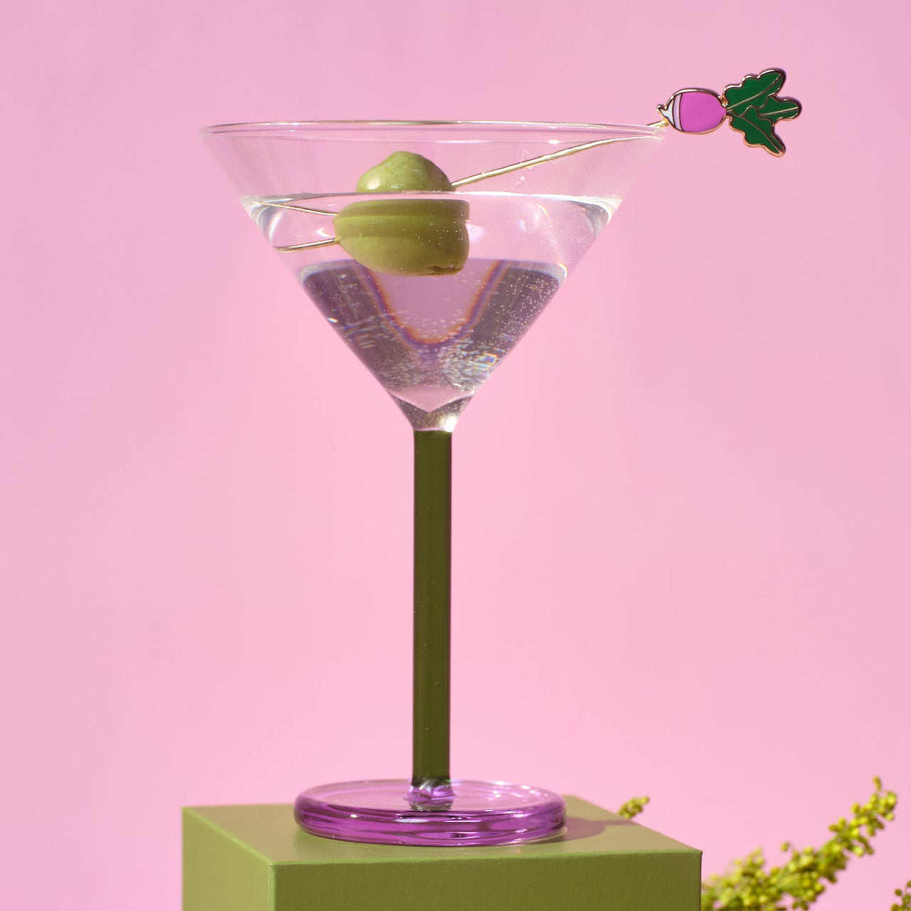 Glass Olive Swizzle Sticks Set