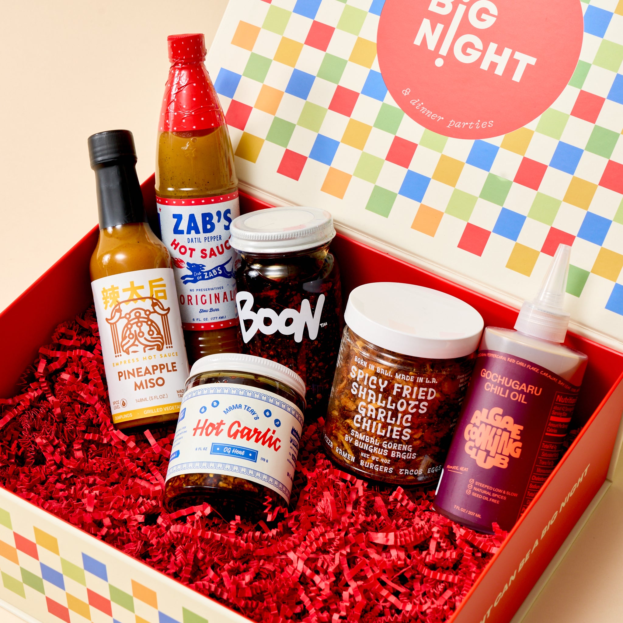 The perfect gift for those who like it hot: six of our spiciest pantry essentials. This Big Night Gift Box includes:
