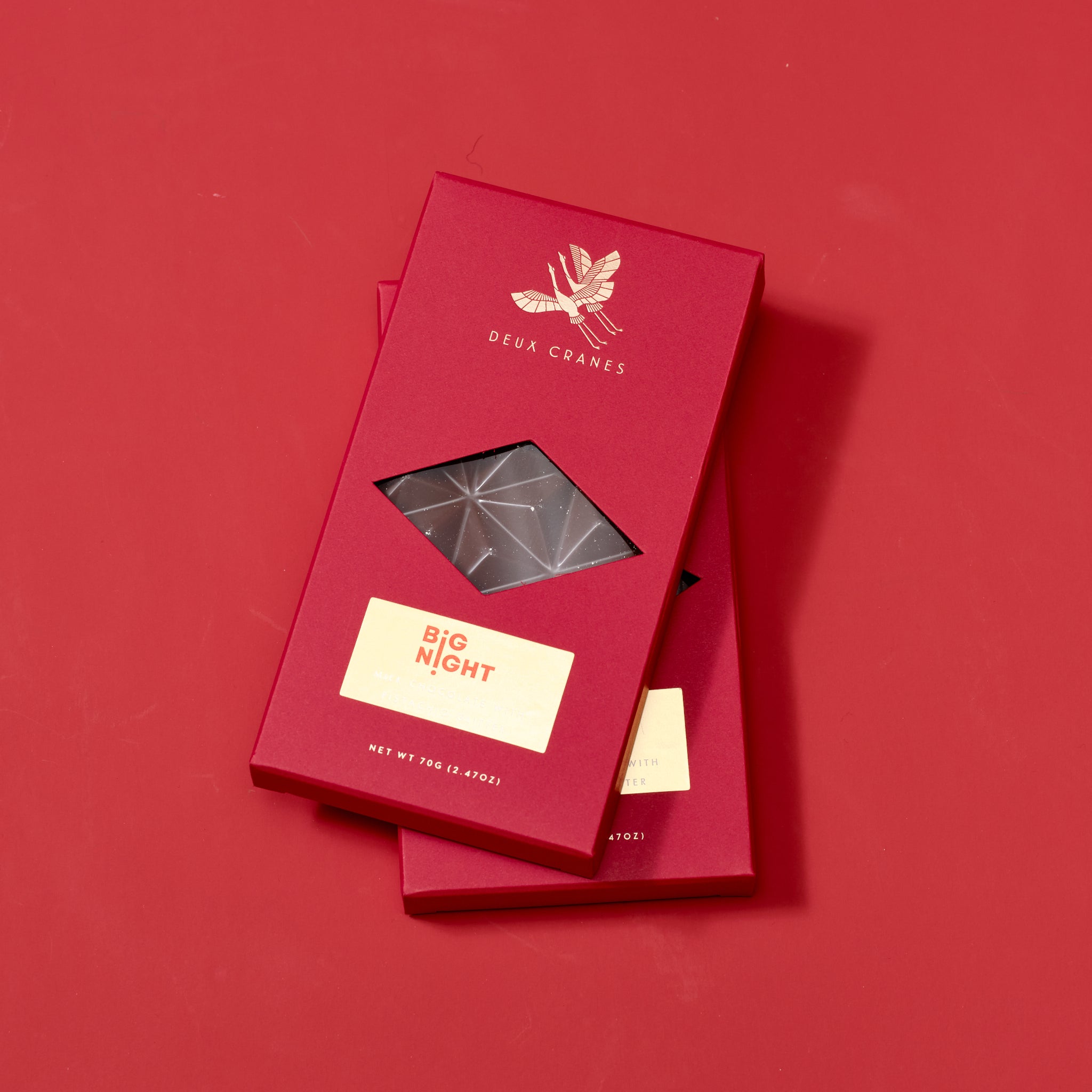 Decadent chocolate meets Big Night Glitter. Our chocolate bars combine our signature pistachio + spice mixture with Deux Crane's incredible chocolate sourced from Valrhona, in Tain L’Hermitage, France. The perfect host gift, available in milk and dark chocolate.