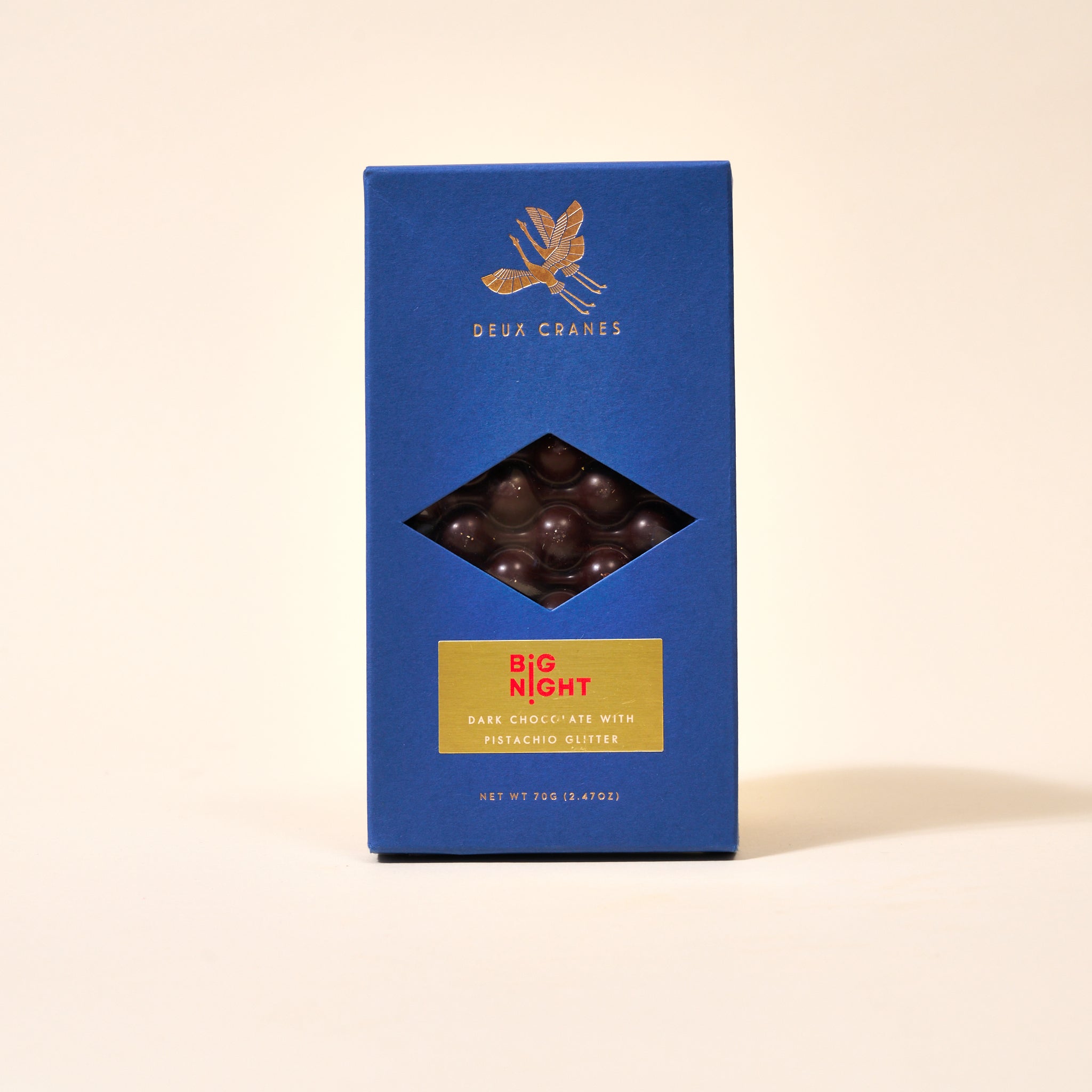 Decadent chocolate meets Big Night Glitter. Our chocolate bars combine our signature pistachio + spice mixture with Deux Crane's incredible chocolate sourced from Valrhona, in Tain L’Hermitage, France. The perfect host gift, available in milk and dark chocolate.