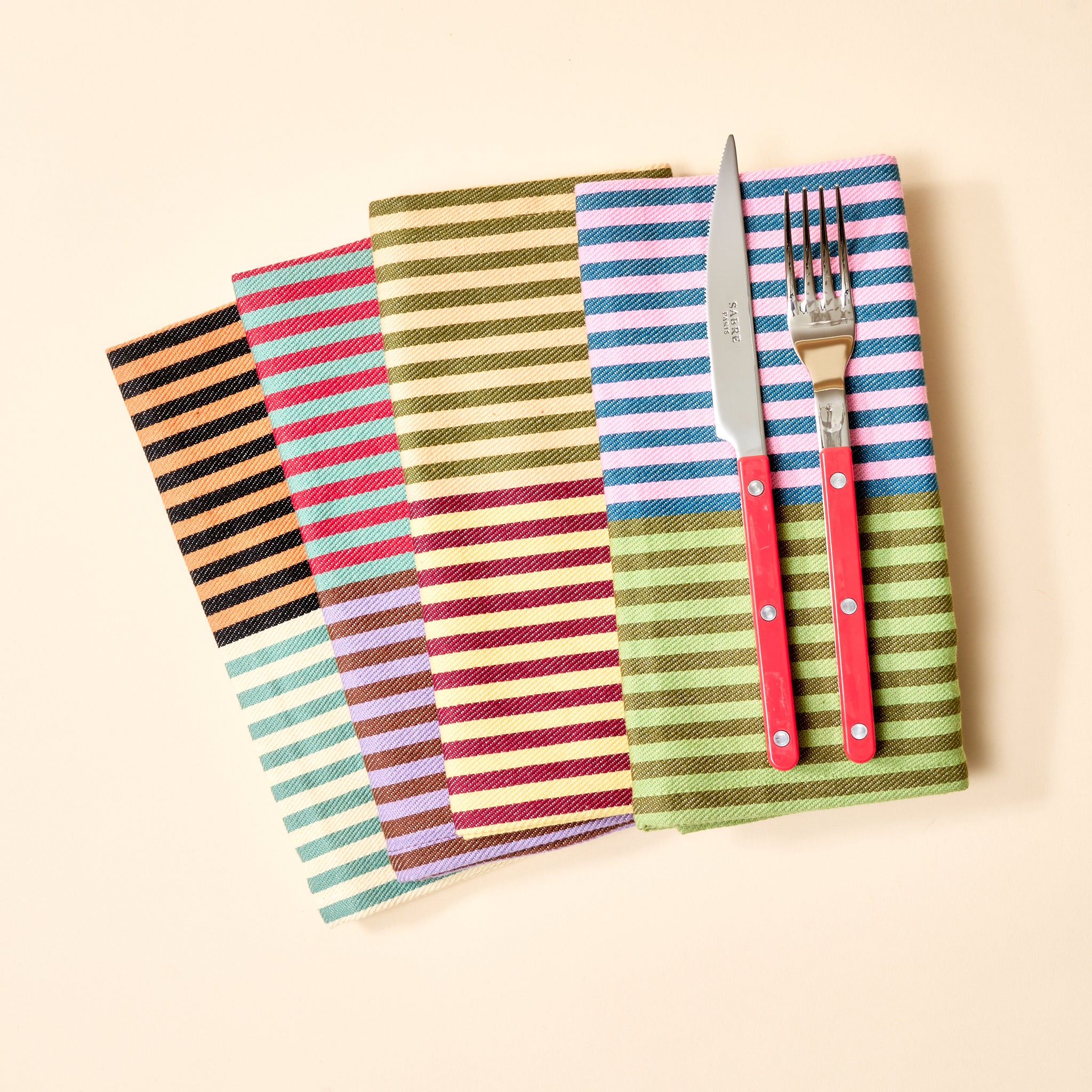 Folded on a plate, draped across your lap, or discarded on the dining table, these napkins always look good. Charming, colorful, and mixed — not matched.