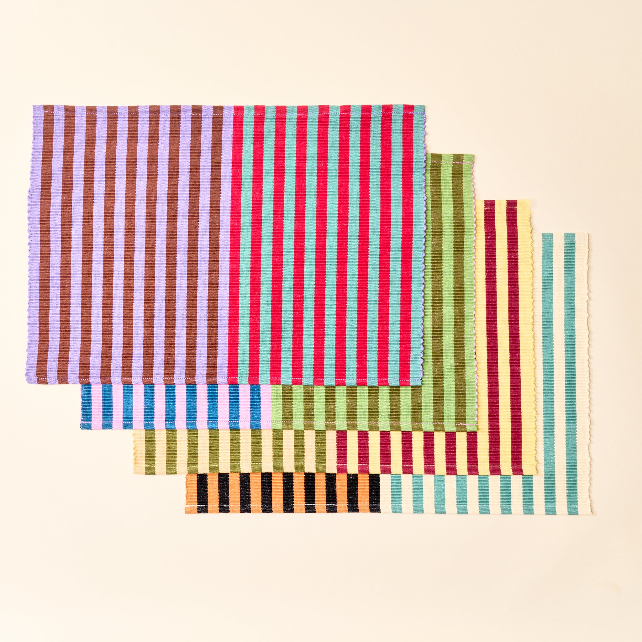Places please! These dual-striped placemats set the stage for all your dinners and dinner parties. Charming, colorful, and mixed — not matched.