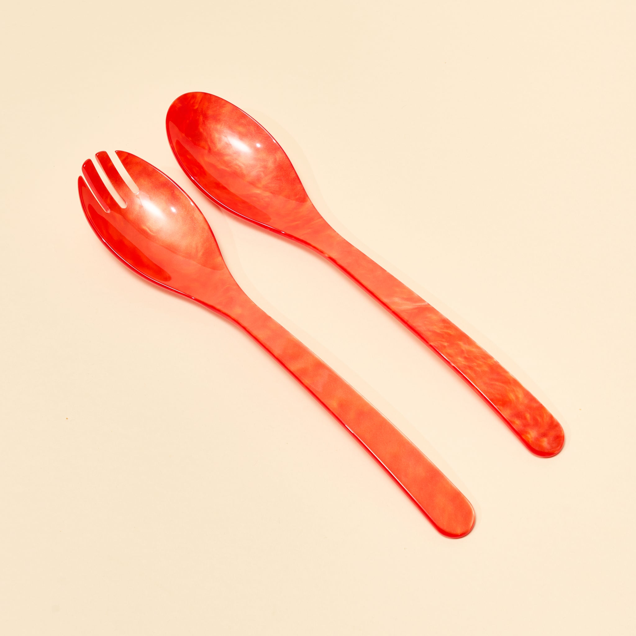 A serving set with a big personality. This resin duo is durable and versatile, and brings a little something extra to whatever it's dishing out.