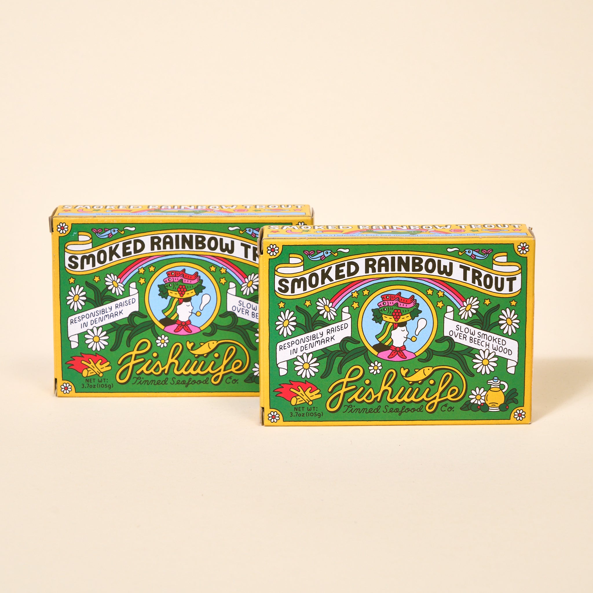 Fishwife works with heritage canneries in Washington State and British Columbia to bring you delicious, 100% traceable tinned seafood. Each tin is 3.5 ounces. Ingredients: Rainbow Trout (Fish), Extra Virgin Olive Oil, Cane Sugar, Salt, Garlic Powder, Onion Powder