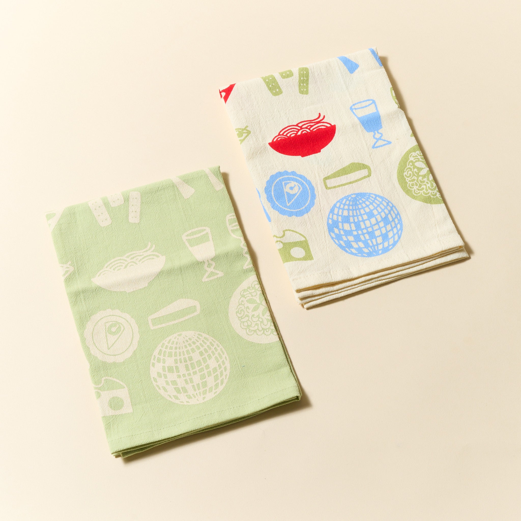 What is a tea towel, exactly? Well, if we're talking about these tea towels, we'd say they're: your new favorite dishrag, the art hanging from your oven's handle, or the napkin that brightens up every weeknight dinner. Made just for us by Julie Peach in Denver.